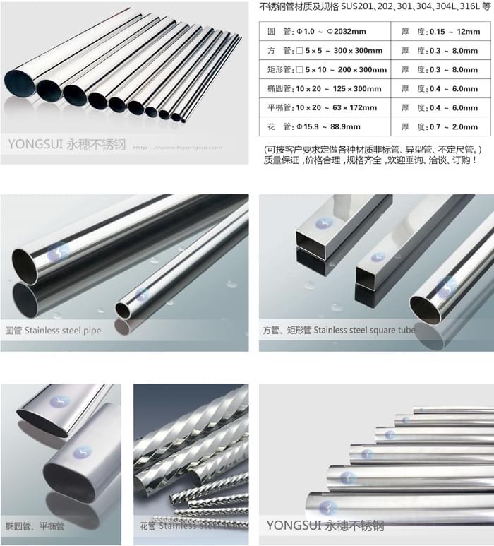 尊敬的客戶您好!這里是永穗不銹鋼,本公司專業生產不銹鋼機械構造用、304不銹鋼管,304L不銹鋼方管,316不銹鋼管,316L不銹鋼矩形管,304裝飾管廠,304矩形管,304方通,非標不銹鋼管訂做管、316L不銹鋼工業管、不銹鋼方管、304不銹鋼裝飾管、非標不銹鋼方矩管。